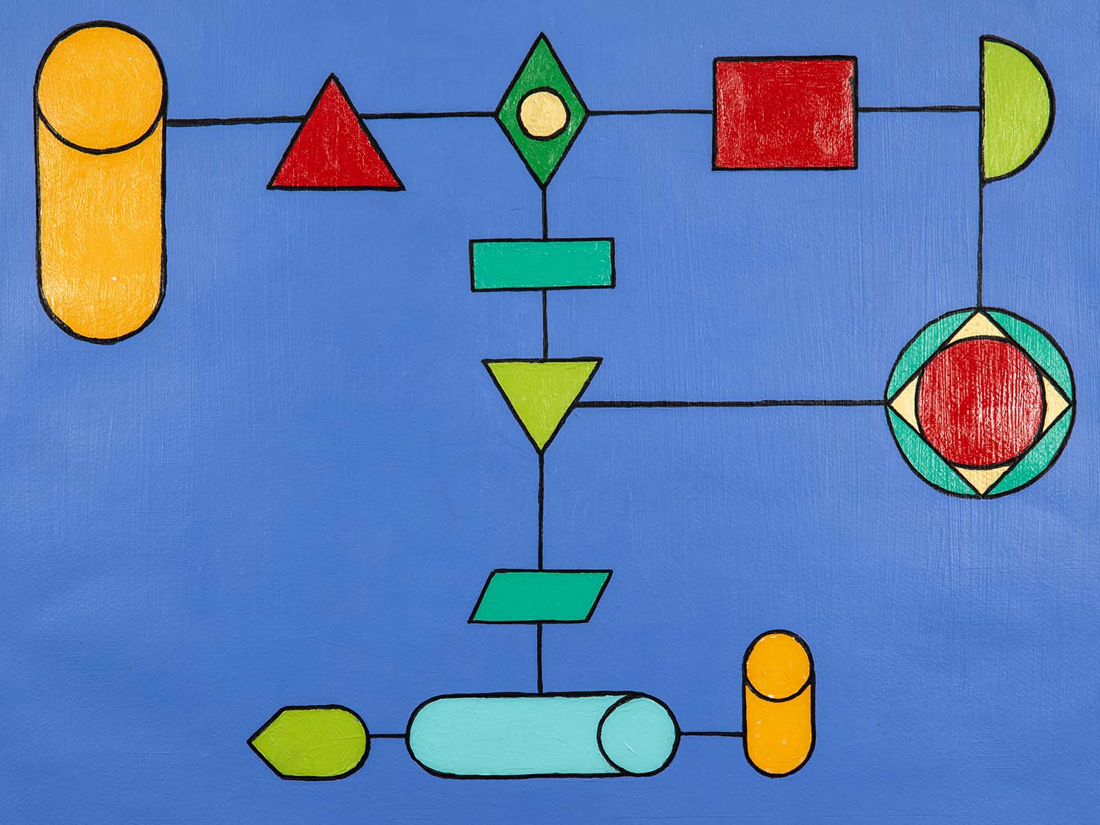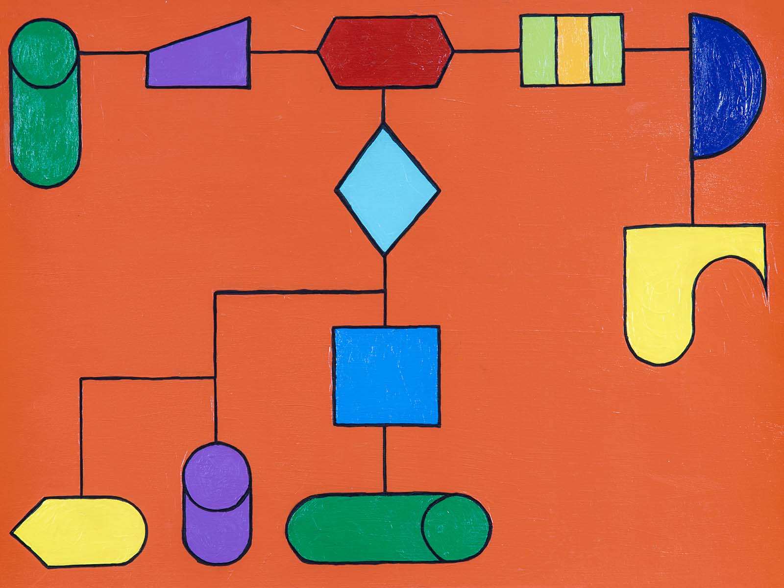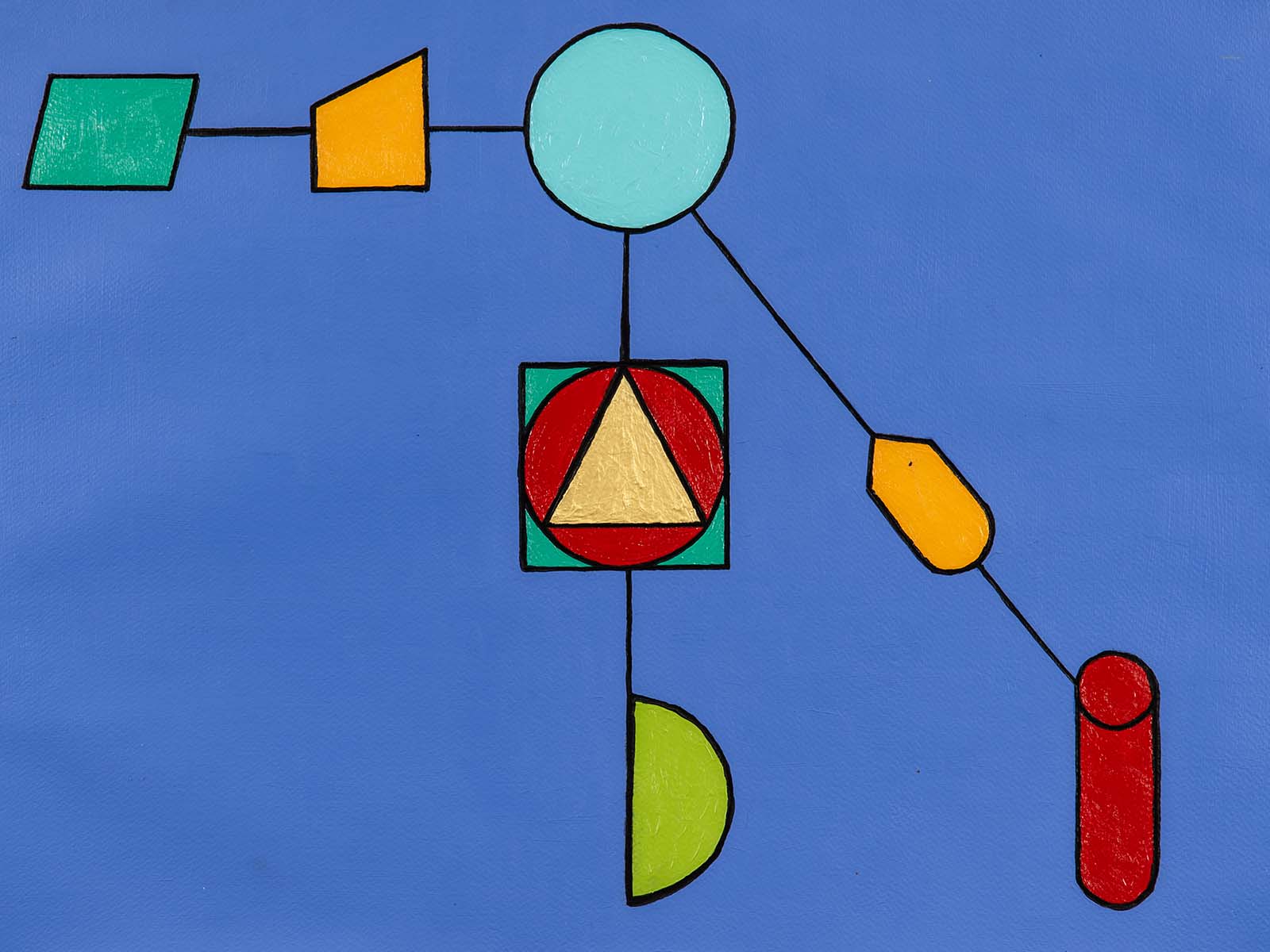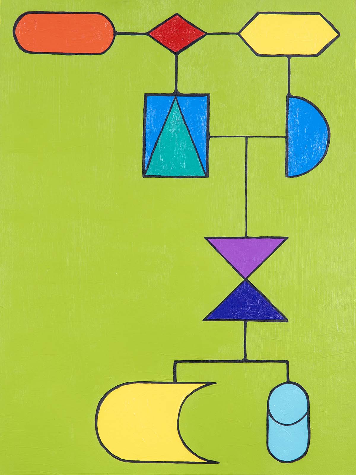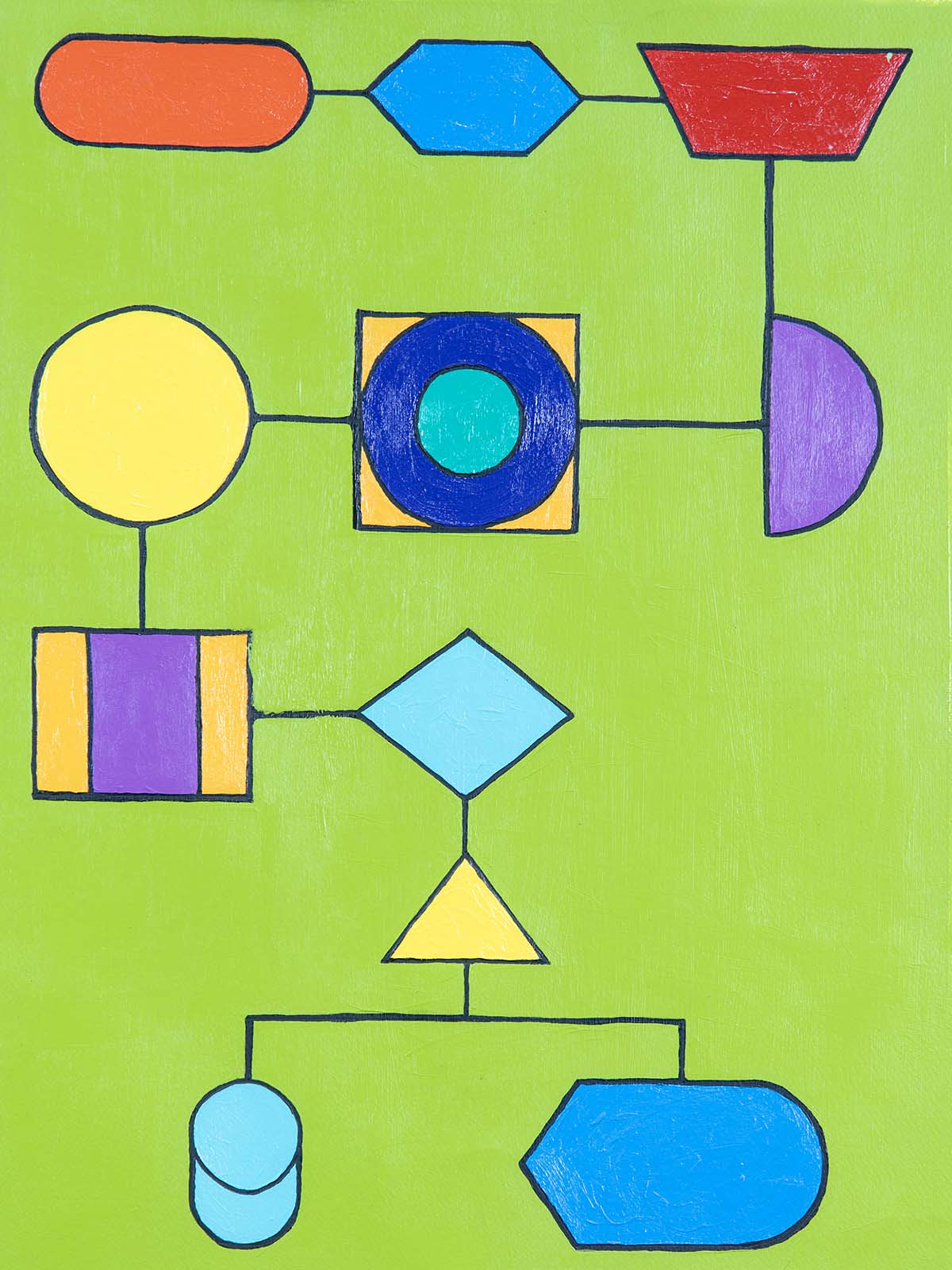 These paintings are all acrylic on paper 18″ x 24″. They were inspired by my continued meditation practice and how I was starting to see more distinct shapes and their connections with each and I began to interpret this as what a thought may look like.